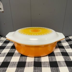Vintage Pyrex Sunflower Daisy 1.5 Quart Casserole with Lid #043 Yellow White