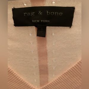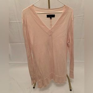 Rag & Bone dusty rose pink oversized V-neck sweater size small. Sweater has dashed cutout detail along sleeves and back. 100% cotton. Super lightweight. Excellent condition.