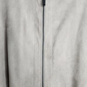 Armani Collezione Tan Brown Suede Leather Zip Front Jacket Knit Insets Size 44
