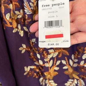 A never worn Free People beautifully embroidered - purple 100 percent cotton size large. Perfect condition and ready to be rocked!