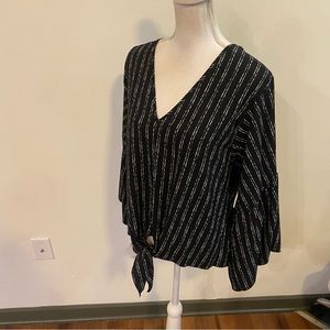 Anthropologie Lavender & Field Striped Bell Sleeve Blouse With Front Tie