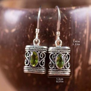 1 Pair of Vintage Creative Carved Round Green Cubic Zirconia Drop Earrings beautiful as a gift