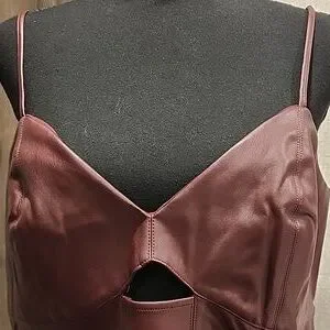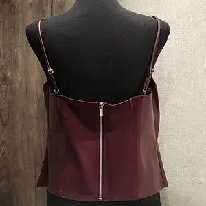 Tank Top Faux Leather Adjustable Spaghetti Straps. Burgundy!