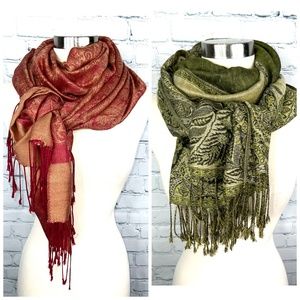 Green SOLD🚫NWOT 2-|•PASHMINA•| 1 GREEN + 1 RED/GOLD 70% Pashmina + 30 % Silk