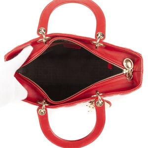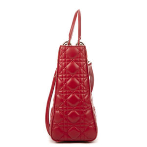 Dior Handbag Lady Large in Red Calfskin Leather and Silver hardware. The product is in Excellent Condition (A).