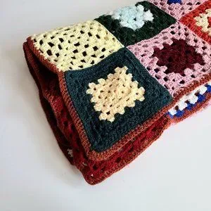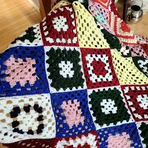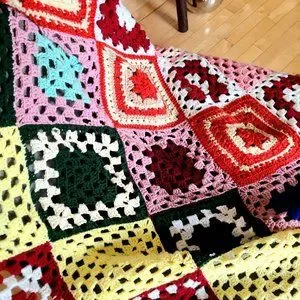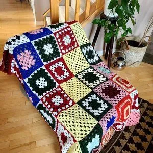 Granny square multicolored throw blanket Afghan.