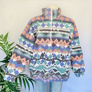 v i n t a g e :: Retro Oversized Aztec Fleece Jacket Pullover