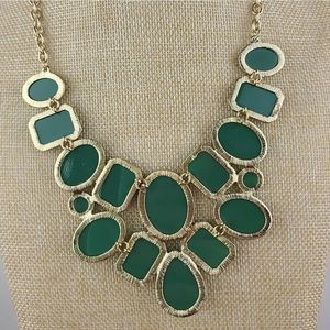 Women's Fashion Jewelry Green Goldtone Statement Necklace
