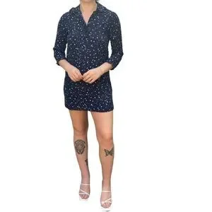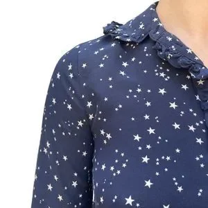 Kate Spade Womens Silk Navy Blue Star 3/4 Sleeve Ruffle Mini Dress Sz XS