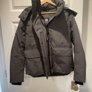 Like new!! Authentic Canada Goose jacket Heavy weight jacket in grey. Fully lined. Jacket comes to hips. Size small:petite