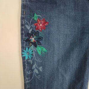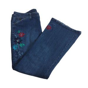 Women's Lilu Wide Leg Embroidered Floral Stretch Low Rise Jeans Sz. 15