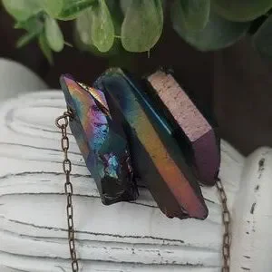 Raw Rainbow Aurora Quartz Crystal Neckace on 20" Goldtone Chain