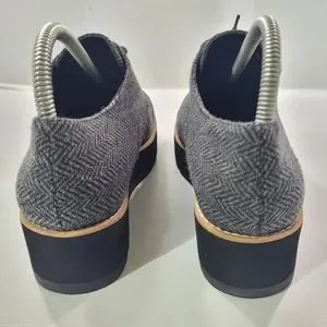 EILEEN FISHER EDDY LACE-UP PLATFORM WOMEN'S TWEED HERRINGBONE OXFORD LOAFER SHOES SIZE 7.5 PRE-OWNED GOOD CONDITION-SEE PICS