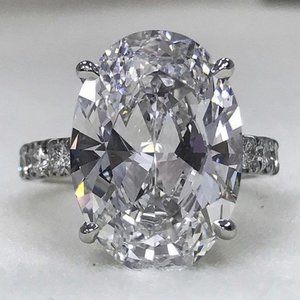 18K Oval Cut White Sapphire Sterling Silver Ring