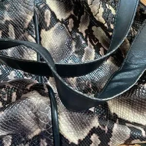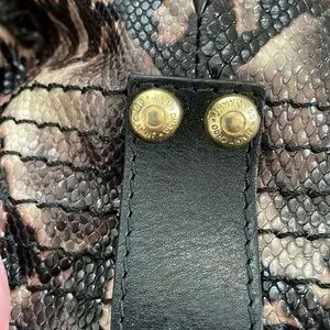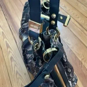 Faux Black, Tan and Gray Python Shoulder Bag With Gold Accents