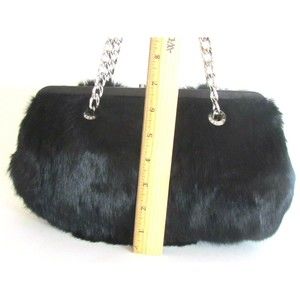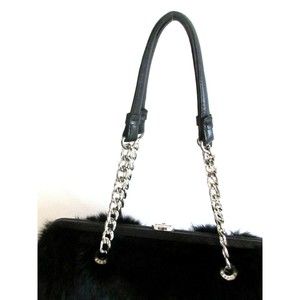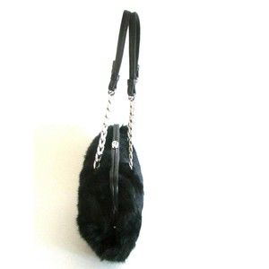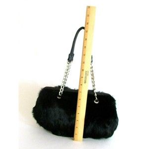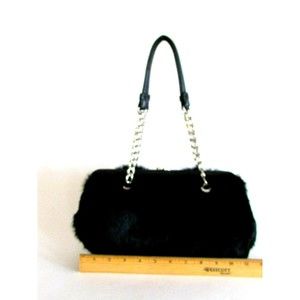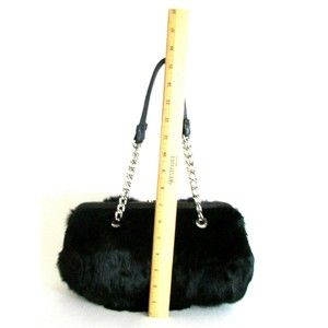 Women's Fur Bag's Designer Michael Kors Black Rabbit Fur Silver Tone Chain Strap