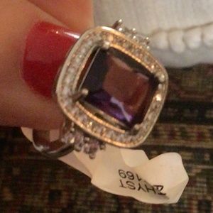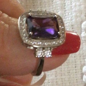 Women’s Amethyst and Crystal Accents Cushion Cut Ring sz 7