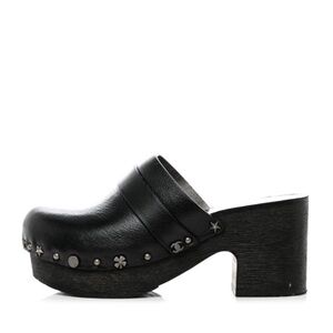 CHANEL Calfskin CC Lucky Charms Studded Clogs Size 41