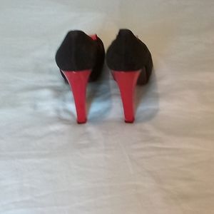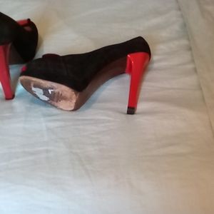🎄Stuart Weitzman black suede and candy apple red Patten leather heels🎄