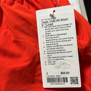 LULULEMON TRACK THAT HR SHORTS 5” in SOLAR ORANGE (SLRO) SZ 2 NWT