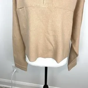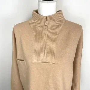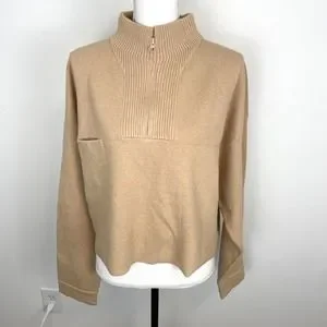 Lunya Tranquil Tan Cozy Cotton Silk Zip Pullover Sweater Size XL New