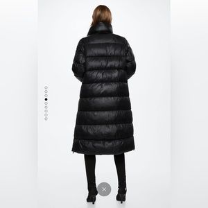 Womens Mango quilted long coat. Black in color. Size L. Brand new with tags. More details in photos.