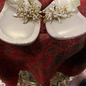 Preowned Talbots sandals/mules with fun beaded and bejeweled ‘Poof’ accent on top.