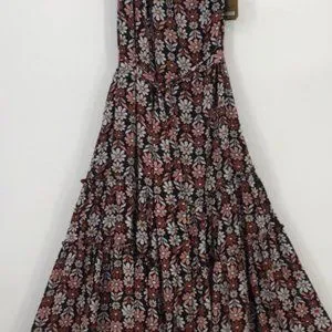 Included the model photo with the pink version to show length and sizing, but this listing is for the black with maroon, pink and white daisy flowers.
