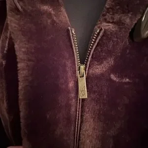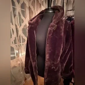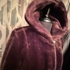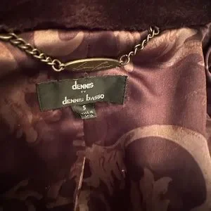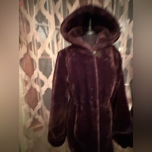 Stunning hooded faux fur coat by Dennis Basso will keep you warm and looking g fantastic this winter! Beautifully made, lined, and trimmed in classic db style! This coat has a cinch belt inside to adjust waist. Gorgeous chocolate brown color!