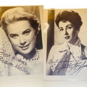 Set of 2 Grace Kelly and Elizabeth Taylor 8.5" x 11 Photo Reproductions Facsimile Autograph