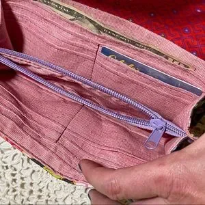 Inside zipper change pocket, 12 card slots & 2 bill slots.