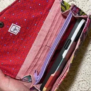 Beautiful & colorful reptile cotton Tula Pink fabric in mauve plum with pinks, magenta & coral florals with a gorgeous teal blue snake & snap closure. Will easily fit a large cell phone (IPhone 13 max case shown in pics).