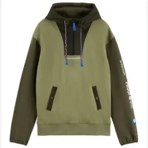 Scotch and soda Amsterdam hoodie Unisex M green 1/4 zip organic cotton