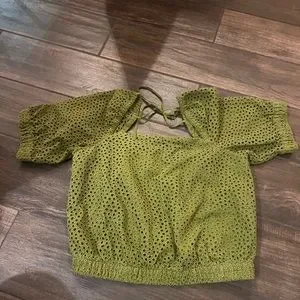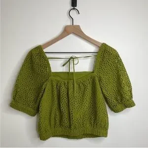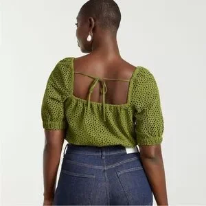 Everlane The Eyelet Puff Sleeve Top in Moss Size S - Excellent preloved condition