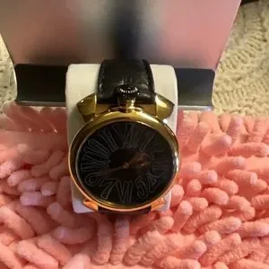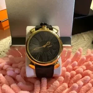 Gaga Milano Watch in big face..leather strap ..gold tone and in good condition.. Authentic..minimal sign of use..fits big wrist