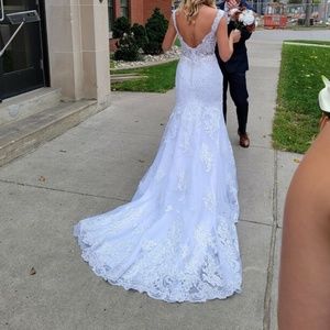 Morilee wedding dress. Looks brand new. Lots of sparkly beading with an open back. Longer train for the ceremony and can be bustled for reception and/or dance.
