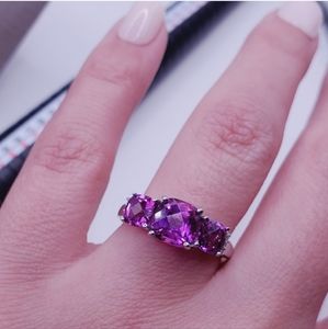 10k Solid White Gold Checkerboard Cut Purple Sapphire & Genuine Diamond Ring