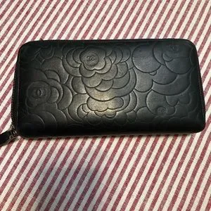 Chanel Camillia calfskin zip wallet.