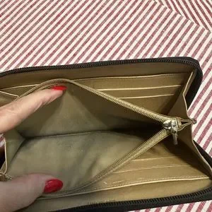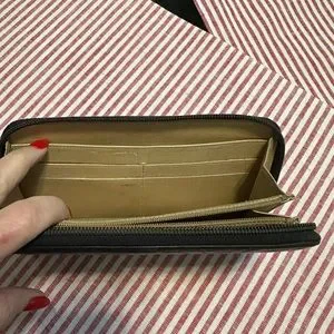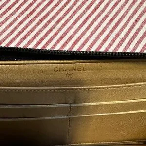 Gorgeous Chanel wallet. Very soft leather. CC logo outside. There is coin residue in the coin pocket. All exterior is excellent condition. No worn out spots anywhere. A few credit card marks on inside also.