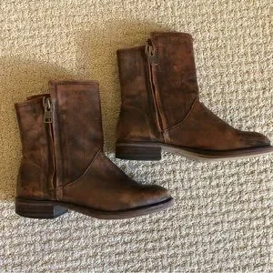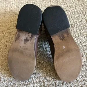 Used condition: wear on bottom heels, loose stitch on front left boot