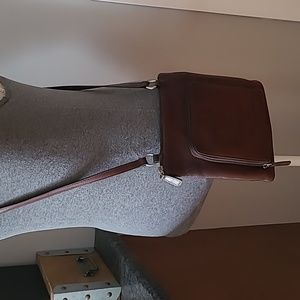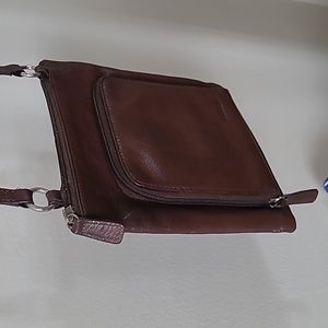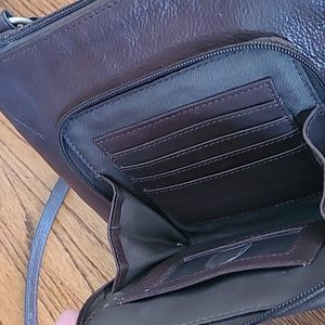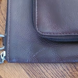 Fossil Dark Brown Leather Crossbody Multi Zipper Pockets Bag