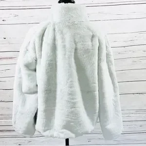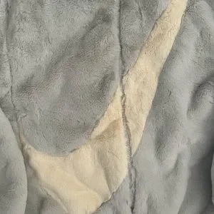 The warm faux-fur jacket has an oversized Swoosh graphic that makes a statement.