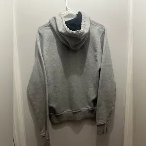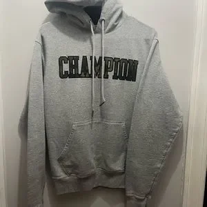 Grey Champion hoodie with camo lettering. Mens S