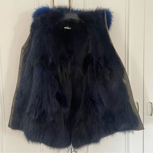 Convertible jacket, interior fur vest and hood can be removed and worn separately with fur facing out or in, or on top of coat.