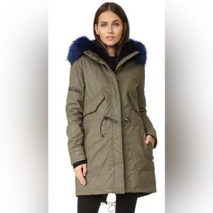 SAM Lux Limelight Hooded Parka Fur convertible to vest, Army green and blue