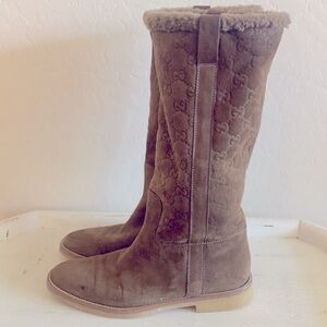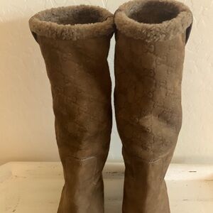 Gucci brown monogram soft wool lining boots