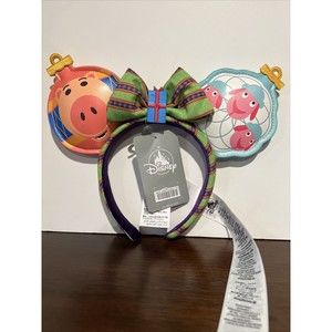 Elevate your holiday outfit with this charming Minnie Mouse ears headband featuring a festive Pixar Toy Story Christmas design. The iconic Mickey Mouse ears are adorned with a whimsical holiday-inspired bow and the beloved character Hamm from the popular franchise. This one-size-fits-all headband is perfect for Disney enthusiasts of all ages and can be worn as a statement piece or as part of a complete costume.
