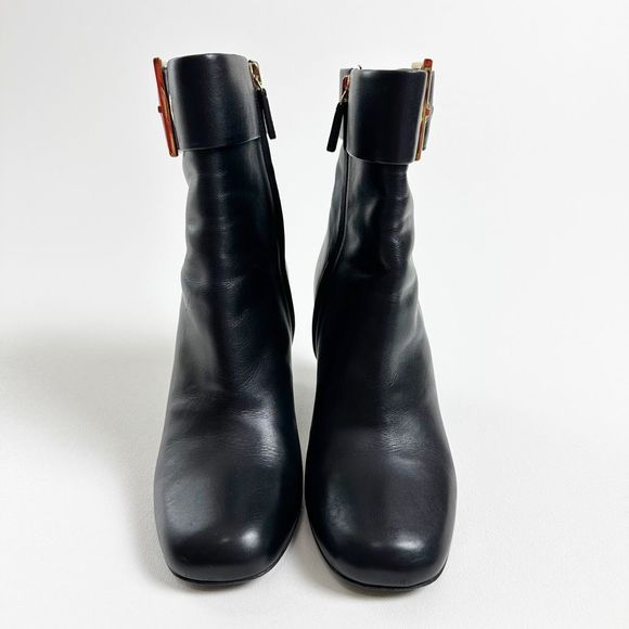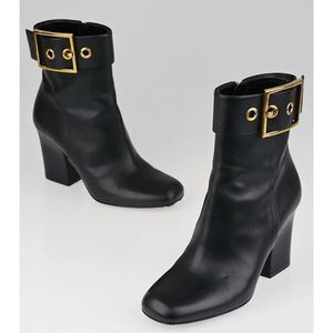 GUCCI Kesha Buckle Ankle Boots 36.5 US 6.5 Black Smooth Leather Heeled Booties