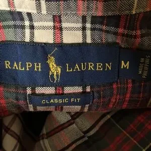 Size M. Men’s Ralph Lauren classic fit long sleeve shirt with button down collar. Sleeves have 2 button closure. Color is Black, red and white with checkered/striped pattern and Black pony on chest. Approximate flat measurements are. Overall length is 28/29” Pit to pit 24” Sleeve length from shoulder to cuff is 27”. In EXCELLENT condition. Questions welcome.
