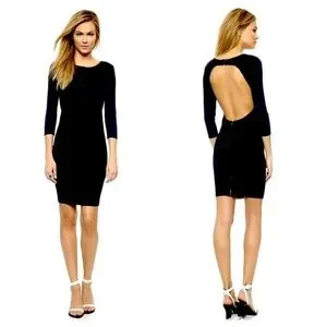 Brand New with the tag David Lerner Open Back 3/4 Sleeve Little Black Pencil Dress, above knee length. Open back, zipper on the back on the skirt, hooks closure on top of the back. No flaws, was stored in the closet for a while. Size S. General regular size guide attached (taken from Revolve where DL dresses are sold).